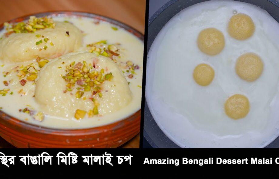 Malai Chop or Cream Chop is a traditional and authentic Bengali Sweet dish prepared from fresh chenna (cottage cheese). This sweet recipe is soft and juicy from inside. The Mawa stuffing and Cream layering adds extra flavour to the Mithai. Chenna is used in preparing a number of sweets. Sweets such as Rasgulla, Rajbhog, Rasmalai, Cham Cham, etc. are made from chenna. All these Sweet Recipes are prepared with different variations. It is served as a dessert after the meal or as a side dish with the meal.